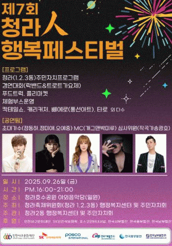 ¡®Ã»¶óìÑ Çູ Æä½ºÆ¼¹ú¡¯Àº û¶ó1.2.3µ¿ ÇàÁ¤º¹Áö¼¾ÅÍ¿Í ÁÖ¹ÎÀÚġȸ°¡ °øµ¿À¸·Î ÃßÁøÇϴ û¶ó ÁֹΠÈÇÕÀÇ ÀåÀ¸·Î, 2016³âºÎÅÍ ¸Å³â °¡À» û¶óÈ£¼ö°ø¿ø ¾ß¿ÜÀ½¾Ç´ç¿¡¼ ¿¸®°í ÀÖ´Ù.