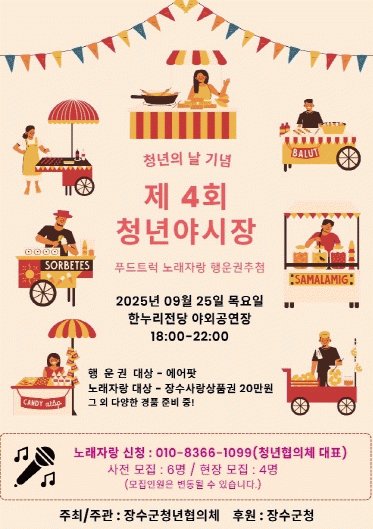 À̹ø Çà»ç´Â Àå¼ö±º û³âÇùÀÇü°¡ ÁÖÃÖ¡¤ÁÖ°üÇϸç, û³âµéÀÇ Ã¢ÀÇÀû ±âȹÀ» ¹ÙÅÁÀ¸·Î ´Ù¾çÇÑ ¸Ô°Å¸®¿Í Áñ±æ °Å¸®, °ø¿¬ ÇÁ·Î±×·¥À» ÁغñÇØ ±º¹Î°ú °ü±¤°´ÀÌ ÇÔ²² ¾î¿ï¸± ¼ö ÀÖ´Â ¾ß°£ ÃàÁ¦ÀÇ ÀåÀ¸·Î ¸¶·ÃµÆ´Ù.