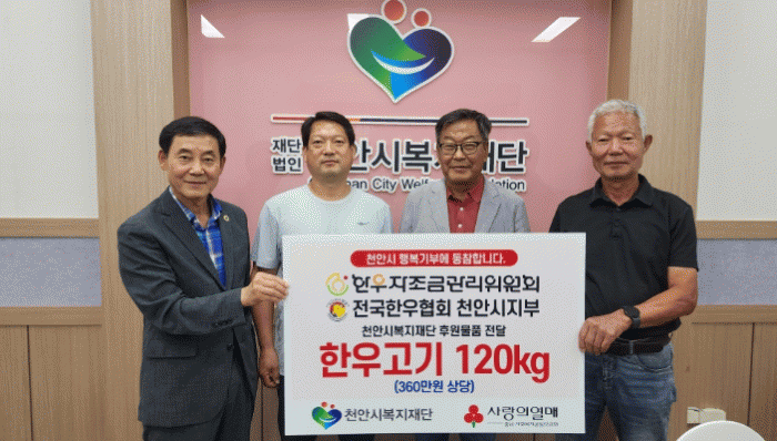 ÇÑ¿ìÀÚÁ¶±Ý°ü¸®À§¿øÈ¸¿Í Àü±¹ÇÑ¿ìÇùȸ õ¾È½ÃÁöºÎ´Â Áö³ÇØ¿¡µµ 370¸¸ ¿ø »ó´çÀÇ ±¹°Å¸® 110kg¸¦ Àü´ÞÇϸç Áö¼ÓÀûÀÎ ³ª´®À» ½ÇõÇϰí ÀÖ´Ù.