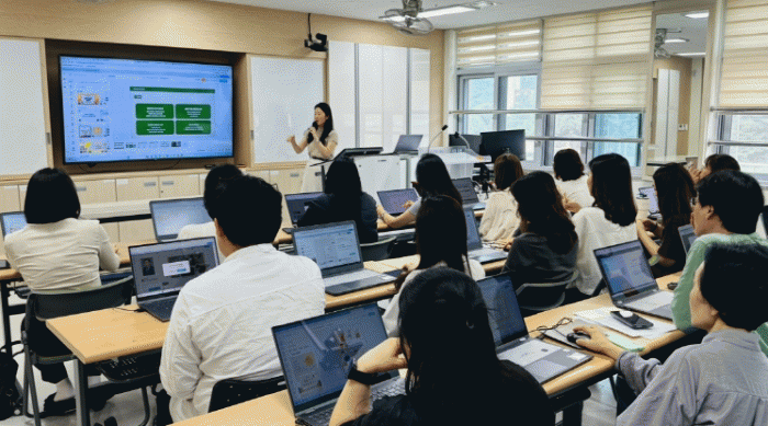 À̳¯ ÀåÇÐÀº ¡®¸¶ÁÖ¿Â ±â¹ÝÀÇ ¿¡µàÅ×Å© Ȱ¿ë ¼ö¾÷ Á¦ÀÛÀÇ ½ÇÁ¦¡¯¶ó´Â ÁÖÁ¦·Î ÁøÇàµÆÀ¸¸ç, Ãæ³² Á¤º¸±³À°Áö¿ø´ÜÀ¸·Î Ȱµ¿Çϰí Àִ õ¾ÈÁß °øÁø ±³»ç´Â ½ÇÁ¦ ¼ö¾÷ »ç·Ê¿Í ´Ù¾çÇÑ µðÁöÅÐ µµ±¸ Ȱ¿ë ¹æ¾ÈÀ» Áß½ÉÀ¸·Î °ÀÇ¿Í ½Ã¿¬ À§ÁÖ·Î ¿¬¼ö¸¦ ÁøÇàÇß´Ù.