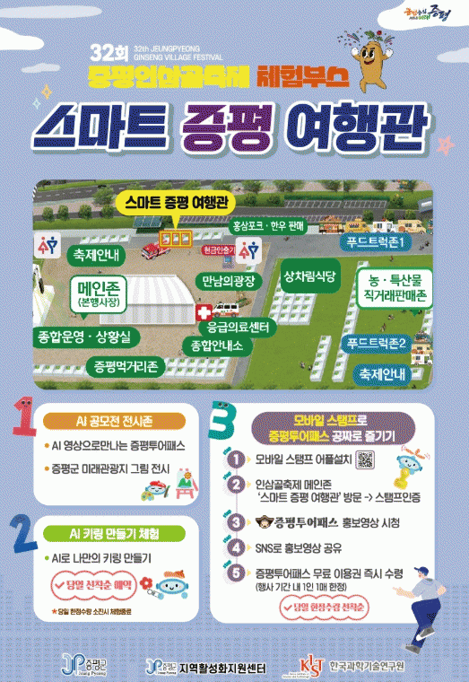 ÁÖ¿ä ³»¿ëÀº ¡â¡®2025 ÁõÆò±º »ý¼ºÇü AI °ø¸ðÀü¡¯¼ö»óÀÛ Àü½Ã ¡âAI ۸µ ¸¸µé±â üÇè ¡â¸ð¹ÙÀÏ ½ºÅÆÇÁÅõ¾î ÀÎÁõ À̺¥Æ®(ÁõÆòÅõ¾îÆÐ½º ¹«·áÀÌ¿ë±Ç Á¦°ø) µîÀ¸·Î, ÁõÆòÀÌ Áغñ ÁßÀÎ ¹Ì·¡Çü ¿©Çà ÄÜÅÙÃ÷¸¦ ÇÑ´«¿¡ üÇèÇÒ ¼ö ÀÖ´Ù.