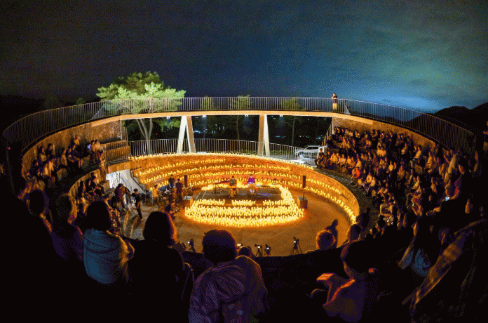 ¾Þ°Àü¸Á´ë µ¹°è´ÜÀÌ °´¼®À¸·Î Ȱ¿ëµÆ°í, ÃкҰú º°ºû, ÆÄµµ ¼Ò¸®°¡ Á¶È¸¦ ÀÌ·ç¸ç Ưº°ÇÑ ¹«´ë°¡ ¿Ï¼ºµÆ´Ù.