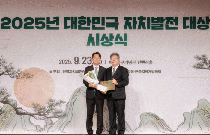 À̳¯ ½Ã»ó½Ä¿¡¼ ´ëÀü½Ã´Â Àü±¹ ±¤¿ªÀÚÄ¡´Üü °¡¿îµ¥ À¯ÀÏÇÏ°Ô ¼ö»óÇÏ¸ç ¹Î¼± 8±â ÀÚÄ¡Çõ½Å Á¤Ã¥ÀÌ Àü±¹Àû ÀÎÁ¤À» ¹Þ¾ÒÀ½À» ÀÔÁõÇß´Ù.