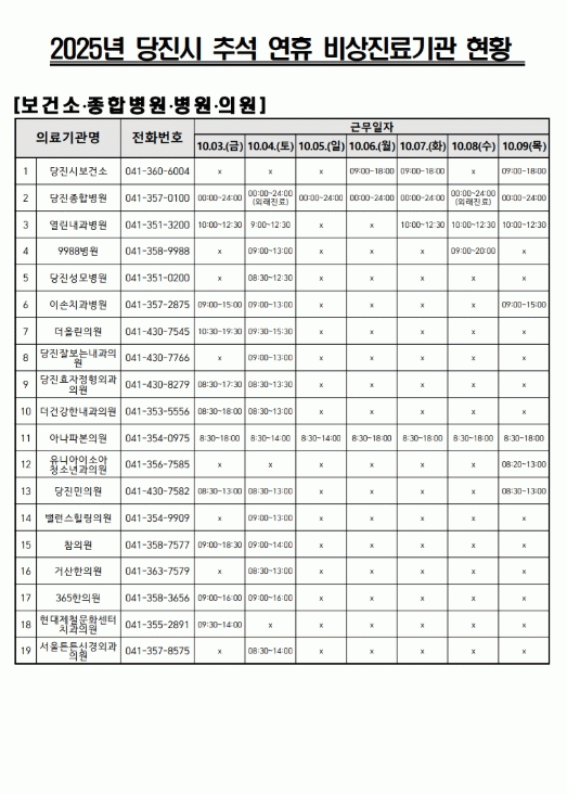 º¸°Ç¼Ò´Â ¿¬ÈÞ Áß 10¿ù 6ÀÏ, 7ÀÏ, 9ÀÏ ¿ÀÀü 9½ÃºÎÅÍ ¿ÀÈÄ 6½Ã±îÁö Áø·á½ÇÀ» ¿î¿µÇϸç, ÀÀ±ÞÀÇ·áÁö¿ø¹ÝÀ» Æí¼ºÇØ Àç³ ¹× ´Ù¼ö »ç»óÀÚ »ç°í¿¡µµ ´ëºñÇÒ ¿¹Á¤ÀÌ´Ù.