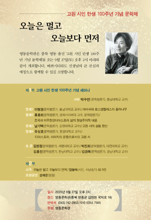 Á¦2ºÎ´Â °í¿ø ½ÃÀÎÀÇ ´ëÇ¥ÀÛÀ» ¸ð¾Æ ±¸¼ºÇÑ ½Ã±Ø °ø¿¬À¸·Î, ±èÇü¼÷(½ÃÀΡ¤½Ã³¶¼Û°¡) ¿Ü 6ÀÎÀÌ ¡®¿À´ÃÀº ¸Ö°í ¿À´Ãº¸´Ù ¸ÕÀú¡¯¸¦ ¹«´ë¿¡ ¿Ã¸°´Ù. ÀÌ¾î ±ÇÀçÀº ¸íâÀÇ ¡®ÅëÀÏ ºñ³ª¸®¡¯ µî ÃÊû°ø¿¬µµ ÁøÇàµÈ´Ù.