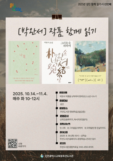 À̹ø ÇÁ·Î±×·¥Àº ´ë¸é µ¶¼µ¿¾Æ¸® Çü½ÄÀ¸·Î ÁøÇàµÇ¸ç, ¹Ú¿Ï¼ ÀÛ°¡ÀÇ Àú¼ ¡º³ª¸ñ¡», ¡º±×¸®¿òÀ» À§ÇÏ¿©¡», ¡º¸ð·¡¾Ë¸¸ ÇÑ Áø½ÇÀ̶󵵡»¸¦ ÇÔ²² Àаí ÁÖ¿ä ºÎºÐÀ» ³¶µ¶ÇÏ¸ç ¼Ò°¨À» ³ª´©´Â ½Ã°£À¸·Î ¸¶·ÃµÆ´Ù.
