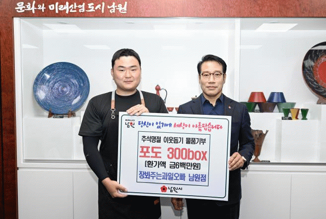ÀåºÁÁִ°úÀÏ¿Àºü ³²¿øÁ¡¿¡¼´Â Áö³ 2024³â Ãß¼®¿¡µµ Áö¿ª»çȸÀÇ ¾î·Á¿î ÀÌ¿ôÀ» À§ÇØ Æ÷µµ 312¹Ú½º¸¦ ±âºÎÇÑ ¹Ù ÀÖ´Ù.