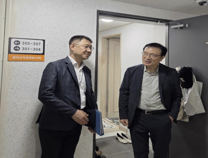 ÀÓÅÂÈñ °æ±âµµ±³À°°¨Àº À̳¯ ±¤´ö°øµ¿»çÅÃÀ» Á÷Á¢ ¹æ¹®ÇØ °ÅÁÖ È¯°æÀ» »ìÆñ´Ù. ÀÓ ±³À°°¨Àº ÀÔÁÖÇÑ Àú°æ·Â °ø¹«¿ø°ú ¾Ç¼öÇÏ¸ç ¡°°ü»ç »ýȰÀÌ ½ÇÁ¦·Î ¾î¶²Áö, »ýȰ ¿©°ÇÀº ¸¸Á·½º·¯¿îÁö¡±¸¦ ¹¯°í ÇöÀåÀÇ ¸ñ¼Ò¸®¸¦ °æÃ»Çß´Ù. ÀÌ¿¡ °ÅÁÖÀÚ´Â ¡°¸Å¿ì ¸¸Á·½º·´´Ù¡±´Â ´ä°ú ÇÔ²², ¾ÈÁ¤µÈ ÁְŠȯ°æÀÌ ¾÷¹« ¸ôÀÔ°ú »ýȰ ¸¸Á·µµ¸¦ µ¿½Ã¿¡ ³ô¿©ÁÖ°í ÀÖ´Ù°í ÀüÇß´Ù. ÀÓ ±³À°°¨Àº »çÅà ³»ºÎÀÇ TV, ¼¼Å¹±â, ÀüÀÚ·¹ÀÎÁö µî »ýȰ °¡Àü°ú ½Ã¼³À» »ìÆìº¸¸ç, À̹ø Á¤Ã¥ÀÌ ´Ü¼øÇÑ ÆíÀÇ Á¦°øÀ» ³Ñ¾î Àú°æ·Â °ø¹«¿øÀÇ Á¤ÁÖ ¾ÈÁ¤°ú ±³À°ÀÇ Áú Á¦°í·Î À̾îÁø´Ù´Â Á¡À» È®ÀÎÇß´Ù. À̾î ÀÓ ±³À°°¨Àº ±¤´öÃʵîÇб³ ½Ã¼³À» µÑ·¯º¸¸ç µ¹º½±³½Ç, ´Ù¹®È±³½Ç, üÀ°°ü µîÀ» °ßÇÐÇß´Ù. ÀÌ´Â Àú°æ·Â °ø¹«¿ø °ü»ç Áö¿ø°ú ±³À° ÇöÀå ¿©°Ç¿¡ ´ëÇÑ ±³À°°¨ÀÇ ³ôÀº °ü½ÉÀ» º¸¿©ÁØ ´ë¸ñÀ̾ú´Ù.