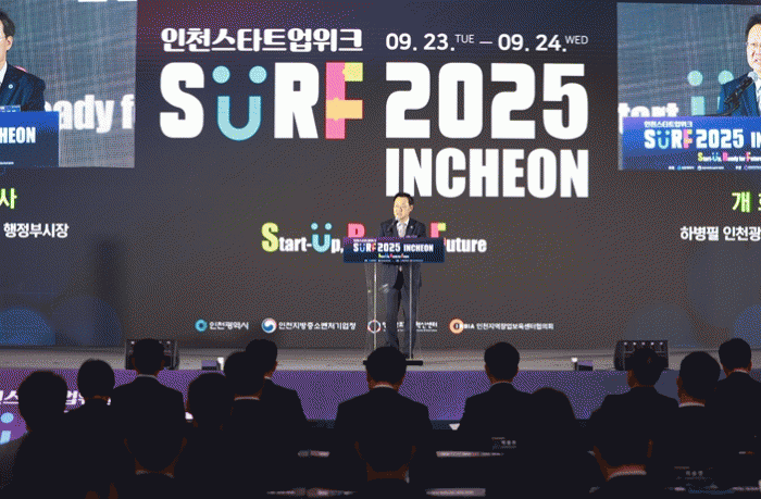 À¯Á¤º¹ ½ÃÀåÀº ¡°SURF 2025 INCHEONÀº AI¡¤·Îº¿ µî ¹Ì·¡ »ê¾÷À» ¼±µµÇÒ Çõ½Å ½ºÅ¸Æ®¾÷ÀÇ ¹«´ë¡±¶ó¸ç ¡°À̹ø Çà»ç°¡ â¾÷°¡¡¤±â¾÷¡¤ÅõÀÚÀÚ µî »ýÅÂ°è ±¸¼º¿ø ¸ðµÎ°¡ ±³·ùÇÏ°í ¼ºÀåÇÏ´Â ±â¹ÝÀÌ µÇ°í, ÀÎõÀÌ ´ëÇѹα¹ ¹Ì·¡ÀÇ Áß½ÉÀ¸·Î µµ¾àÇÏ´Â °è±â°¡ µÇ±æ ±â´ëÇÑ´Ù¡±¶ó°í ¸»Çß´Ù.