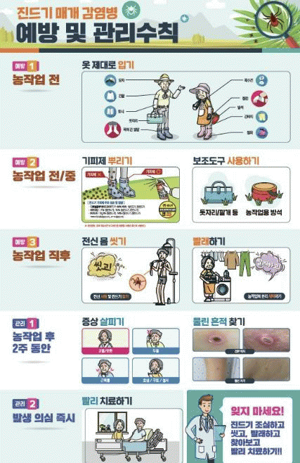 ¿¬ÈÞ ±â°£ Áß ¹ß»ý °¡´É¼ºÀÌ ³ôÀº Áøµå±â ¸Å°³ °¨¿°º´À¸·Î´Â ¡®ÁßÁõ¿¼ºÇ÷¼ÒÆÇ°¨¼ÒÁõÈıº(SFTS)¡¯°ú ¡®¾²¾²°¡¹«½ÃÁõ¡¯ÀÌ ´ëÇ¥ÀûÀÌ´Ù.