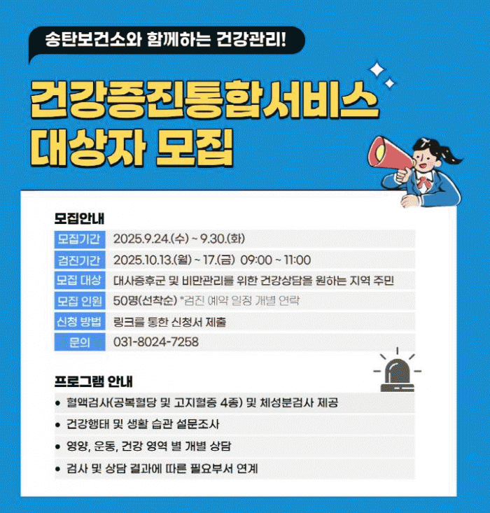 ¡®¡®°Ç°ÁõÁø ÅëÇÕ¼ºñ½º¡¯´Â º¸°Ç¼Ò¸¦ ÇÑ ¹ø¸¸ ¹æ¹®ÇÏ¸é ½Åü °èÃøºÎÅÍ °Ç°»ó´ã ¹× ±³À°, ÇÊ¿ä ºÎ¼ ¿¬°è±îÁö ¸ðµÎ ¹ÞÀ» ¼ö ÀÖ´Â ¿ø½ºÅé °Ç°°ü¸®ÇÁ·Î±×·¥ÀÌ´Ù.