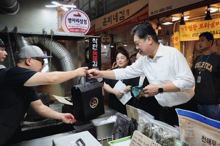 ½ÃÀå »óÀεé°ú ÀÏÀÏÀÌ Àλ縦 ³ª´« ÀÌ ±¸Ã»ÀåÀº ¡°Áö¿ª°æÁ¦ÀÇ ¹öÆÀ¸ñÀÎ ÀüÅë½ÃÀå¿¡ ¸¹Àº ½Ã¹ÎµéÀÌ Ã£¾Æ Ȱ±âÂù ¸íÀý ºÐÀ§±â°¡ À̾îÁö±æ ¹Ù¶õ´Ù.¡±¶ó¸ç, ¡°±¸¹Î ¿©·¯ºÐ²²¼µµ ¿Ã Ãß¼®¿¡´Â ÀüÅë½ÃÀåÀ» Àû±ØÀûÀ¸·Î ÀÌ¿ëÇØ »óÀε鿡°Ô ÈûÀÌ µÇ°í, Áö¿ª°æÁ¦µµ ÇÔ²² »ì¸®´Â ¶æ±íÀº ¸íÀý¿¡ º¸ÅÆÀÌ µÅÁÖ½Ã±æ ºÎŹµå¸°´Ù.¡±¶ó°í ¸»Çß´Ù.