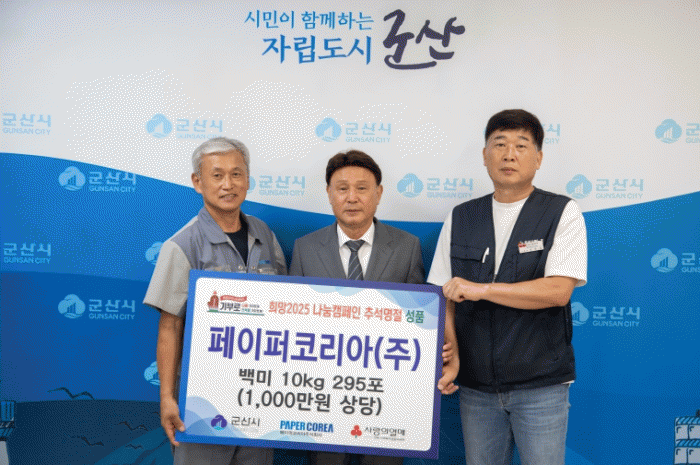 °ÀÓÁØ ±º»ê½ÃÀåÀº ¡°¸Å³â Áö¿ª ÀÌ¿ôÀ» À§ÇØ ±ÍÇÑ Á¤¼ºÀ» º¸³»Áֽô ÆäÀÌÆÛÄÚ¸®¾Æ(ÁÖ)¿¡ Áø½ÉÀ¸·Î °¨»çµå¸°´Ù.¡±¶ó¸ç, ¡°À̹ø¿¡ ±âÅ¹ÇØÁֽйé¹Ì´Â µµ¿òÀÌ ²À ÇÊ¿äÇÑ ¼¼´ë¿¡ ¼ÒÁßÈ÷ Àü´ÞÇϰڴÙ.¡±¶ó°í ÀüÇß´Ù.