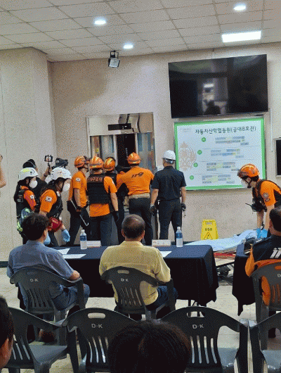 ±¸Ã¼ÀûÀ¸·Î À̹ø ÈÆ·ÃÀº ½Â°±â°¡ 1Ãþ¿¡¼ 2ÃþÀ¸·Î À̵¿ Áß Á¤ÀüÀ¸·Î ÀÎÇØ ½Â°´µéÀÌ ½Â°±â ³»ºÎ¿¡ °¤È÷´Â »óȲÀ» °¡Á¤ÇØ ÁøÇàÇßÀ¸¸ç ¡â½Â°´ ±¸Á¶¿äû ¡â°ü¸®ÁÖü Ãʱâ´ëÀÀ ¡â119 ±¸Á¶´ë¿Í À¯¸®°ü¸®¾÷ü ÇöÀå Ã⵿ ¡â½Â°´ ±¸Á¶ ¼øÀ¸·Î ½ÇÁ¦ »ç°í ¹ß»ý ½Ã ´ëÀÀ ¼ø¼¿Í µ¿ÀÏÇÏ°Ô ÁøÇàµÆ´Ù.