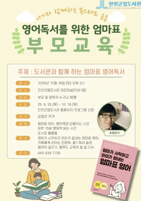 Ư°Àº ¿À´Â 10¿ù 18ÀÏ ¿ÀÈÄ 2½Ã ÁøÃµ±º¸³µµ¼°ü ´ë°Àǽǿ¡¼ ÁøÇàµÉ ¿¹Á¤À̸ç, ºÎ¸ð¿Í ¿µ¾îÃ¥ Àб⿡ °ü½ÉÀÌ ÀÖ´Â ÁøÃµ±º¹Î ´©±¸³ª ½ÅûÇÒ ¼ö ÀÖ´Ù.