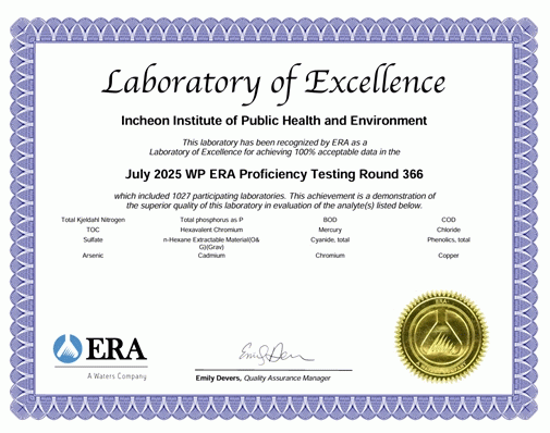 ȯ°æºÐ¾ß ±¹Á¦¼÷·Ãµµ Æò°¡´Â ±¹Á¦Ç¥ÁØÈ±â±¸(ISO/IEC 17043) ÀÎÁõÀ» ¹ÞÀº ¹Ì±¹È¯°æÀÚ¿øÇùȸ(ERA)¿¡¼ ÁøÇàÇÏ´Â ÇÁ·Î±×·¥À¸·Î, Àü ¼¼°è 80¿© °³±¹ÀÇ Á¤ºÎ±â°ü, ´ëÇבּ¸¼Ò, ¹Î°£ºÐ¼®±â°üÀÌ Âü¿©ÇØ ºÐ¼®´É·ÂÀ» °ËÁõ¹Þ´Â ±¹Á¦Àû ÀÎÁöµµ¿Í °ø½Å·ÂÀÌ ÀÖ´Â Æò°¡´Ù.