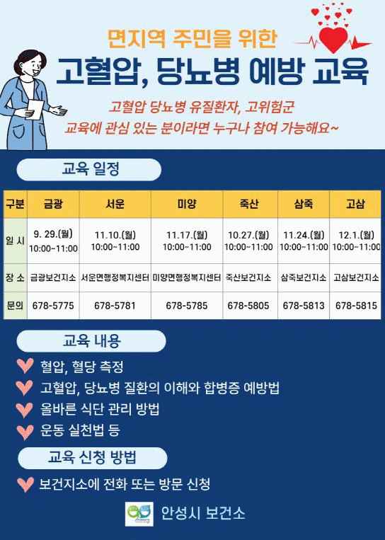 ¾È¼º½Ãº¸°Ç¼Ò °ü°èÀÚ´Â "°íÇ÷¾Ð°ú ´ç´¢º´Àº Á¶±â ¹ß°ß°ú ²ÙÁØÇÑ °ü¸®°¡ ¹«¾ùº¸´Ù Áß¿äÇÑ Áúȯ"À̶ó¸ç "À̹ø ±³À°À» ÅëÇØ Áö¿ª ÁֹεéÀÌ ¿Ã¹Ù¸¥ °Ç°°ü¸® ¹æ¹ýÀ» ÀÍÈ÷°í °Ç°ÇÑ »ýȰ½À°üÀ» ½ÇõÇÒ ¼ö Àֱ⸦ ¹Ù¶õ´Ù"°í ÀüÇß´Ù.