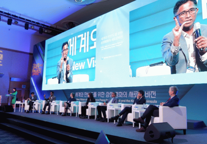 4õ¿© ¸íÀÌ Âü¼®ÇÑ °¡¿îµ¥ ±è´ëÁß Àü ´ëÅë·ÉÀÌ °Á¶Çß´ø »ó»ý°ú ÈÇØ, Çù·ÂÀÇ Á¤½ÅÀ» ÅëÇØ ±Þº¯ÇÏ´Â ±¹Á¦ Áú¼ ¼Ó¿¡¼ »ó»ý ÆòÈÀÇ ÇØ¹ýÀ» ¸ð»öÇÏ´Â ¶æ±íÀº ÀÚ¸®·Î ÁøÇàµÆ´Ù.