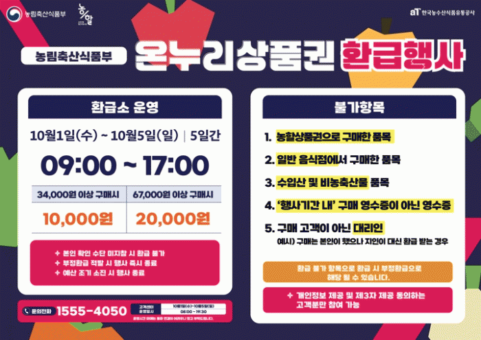 ³ó¸²Ãà»ê½ÄǰºÎ°¡ ÁÖ°üÇÏ´Â À̹ø Çà»ç´Â Çà»ç Âü¿© ÀüÅë½ÃÀå¿¡¼ ±¹»ê ½Å¼± ³óÃà»ê¹°À» ±¸¸ÅÇÑ ¼ÒºñÀÚ¿¡°Ô ±¸¸Å ±Ý¾×ÀÇ ÃÖ´ë 30%¸¦ ¿Â´©¸®»óǰ±ÇÀ¸·Î ȯ±ÞÇÏ´Â ¹æ½ÄÀ¸·Î ¿î¿µµÈ´Ù.
