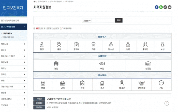 ¶ÇÇÑ ¡â»ý¾ÖÁÖ±â(ÁÖ¡¤ºÎ) ±¸ºÐ ¡âÁ÷¾÷ºÐ¾ß ¡â°ü½ÉºÐ¾ß(ÀϹÝ) µî ¸ÂÃãÇü ºÐ·ù ü°è¸¦ µµÀÔÇØ °³ÀÎ »óȲ¿¡ ÀûÇÕÇÑ Áö¿ø»ç¾÷À» ãÀ» ¼ö ÀÖÀ¸¸ç, ¡âºÎ¼¸í ¡âÆÀ¸í ¡â¼½Ä À¯¹« ¡â÷ºÎ¼·ù µî ÇàÁ¤ ÀýÂ÷¿¡ ÇÊ¿äÇÑ ¼¼ºÎ Á¤º¸±îÁö ÇÔ²² Á¦°øµÈ´Ù.