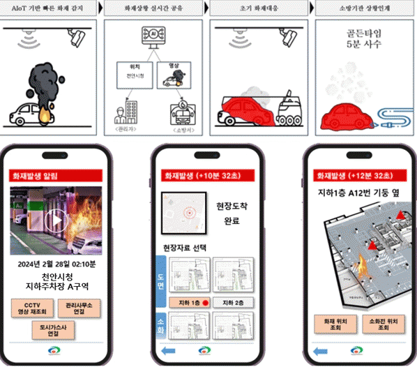 ÀΰøÁö´É ±â¹Ý ¿È»ó ŽÁö½Ã½ºÅÛÀº ÈÀç ¡Èĸ¦ ½Ç½Ã°£À¸·Î °¨ÁöÇØ À¯°ü±â°ü¿¡ ÇöÀå »óȲ°ú ¹ßÈ ÁöÁ¡, ÁÖÂ÷Àå µµ¸é µîÀ» Á¦°ø, ¼Ò¹æ´ç±¹ÀÌ ½Å¼ÓÇϰí È¿À²ÀûÀÎ ÁøÈ ÀÛ¾÷À» ÇÒ ¼ö ÀÖµµ·Ï Áö¿øÇÑ´Ù.