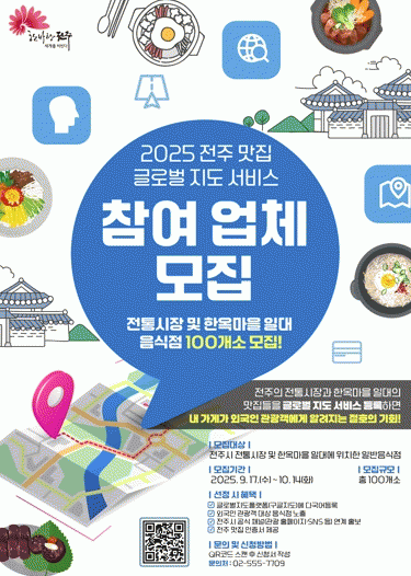 ½Ã´Â ÀüÁÖ¸¦ ã´Â ¿Ü±¹ÀÎ °ü±¤°´µéÀÌ Áö¿ª À½½ÄÁ¡À» ´õ¿í Æí¸®ÇÏ°Ô ÀÌ¿ëÇϰí, À½½ÄÁ¡µéÀÇ ±Û·Î¹ú °æÀï·ÂÀ» °ÈÇϱâ À§ÇØ ¡®2025³â ÀüÁÖ ¸ÀÁý ±Û·Î¹ú Áöµµ ¼ºñ½º Áö¿ø»ç¾÷¡¯À» ÃßÁøÇÑ´Ù°í 29ÀÏ ¹àÇû´Ù.
