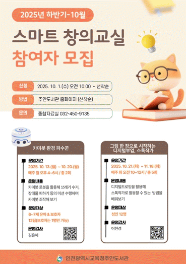 À̹ø ÇÁ·Î±×·¥Àº µÎ °¡Áö·Î, À¯¾Æ(6~7¼¼)¿Í º¸È£ÀÚ°¡ ÇÔ²²ÇÏ´Â ¡®Ä«¹Ìº¿ ȯ°æ ÆÄ¼ö²Û¡¯Àº 10¿ù 13Àϰú 20ÀÏ ¿ÀÈÄ 4½ÃºÎÅÍ 6½Ã±îÁö ÁøÇàµÇ¸ç, ·Îº¿À» Á¶ÀÛÇØ ¾²·¹±â ¼ö°Å¡¤ºÐ¸®¼ö°Å ¹Ì¼ÇÀ» ¼öÇàÇÑ´Ù.