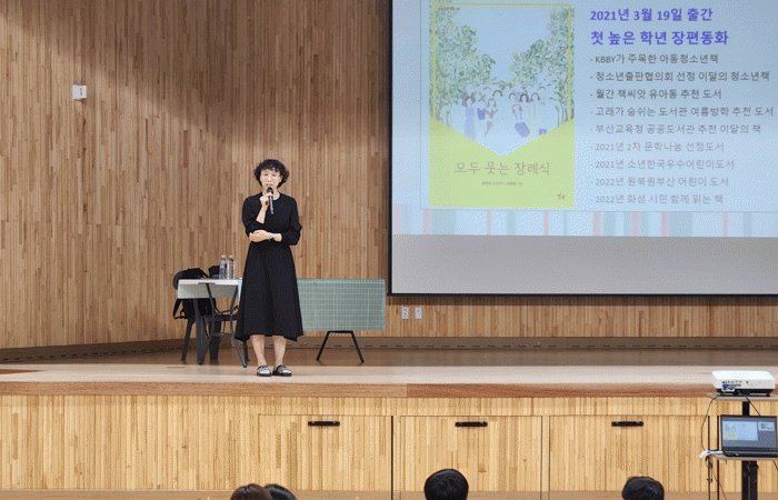 ¶ÇÇÑ ÀÛ°¡´Â ÀÚ½ÅÀÇ Ãß¾ï ¾Ù¹üÀ» °ø°³Çϸç âÀÛ °úÁ¤À» µé·ÁÁÖ¾ú°í, ÁúÀÇÀÀ´ä°ú »çÀÎȸ·Î Çлýµé°ú µû¶æÇÏ°Ô ¼ÒÅëÇß´Ù. ÇлýµéÀº Áú¹®°ú ´ëȸ¦ ÅëÇØ ¹®ÇÐÀ» »õ·Î¿î ½Ã°¢À¸·Î Á¢ÇØ º¸´Â °æÇèÀ» ÇÒ ¼ö ÀÖ¾ú´Ù.