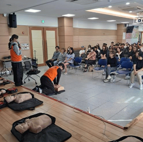 À̳¯ ¾î¸°ÀÌ ÀÌ¿ë½Ã¼³ Á¾»çÀÚ 80¿© ¸íÀÌ Âü¼®ÇÑ °¡¿îµ¥ ½ÇÁ¦ ÀÀ±Þ»óȲ¿¡ ´ëºñÇÑ ½ÉÆó¼Ò»ý¼ú, ±âµµ Æó¼â ÀÀ±Þóġ, VR¡¤AR ÀÀ±Þ»óȲ üÇè µî ½Ç½À Áß½ÉÀÇ ±³À°À» ½ÃÇàÇß´Ù.