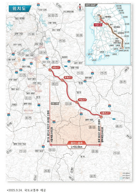 ±¹Åä±³ÅëºÎ¿¡ µû¸£¸é ¾È¼º°ú ¿ëÀÎ-À½¼º-ÃæÁÖ¸¦ ¿¬°áÇÏ´Â ¹ÎÀÚ°í¼Óµµ·Î´Â ¼ÕÀÍ °øÀ¯Çü(BTO-a) ¹æ½ÄÀ¸·Î ÃßÁøµÇ¸ç, ÃÑ¿¬Àå ¾à 55km, ¿Õº¹ 4Â÷·Î, ¼³°è¼Óµµ´Â ½Ã¼Ó 110km