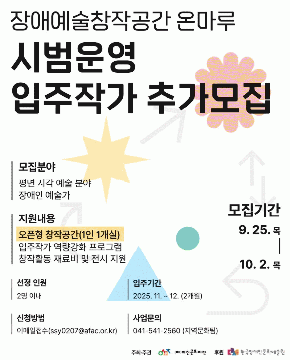 ¡®Àå¾Ö¿¹¼úâÀÛ°ø°£ ¿Â¸¶·ç¡¯ ÀÔÁÖ¸¦ Èñ¸ÁÇÏ´Â ¿¹¼ú°¡´Â ¾Æ»ê¹®ÈÀç´Ü ȨÆäÀÌÁö °øÁö»çÇ×À» È®ÀÎÇÑ µÚ, À̸ÞÀÏ·Î ¼·ù¸¦ Á¦ÃâÇÏ¸é µÈ´Ù.