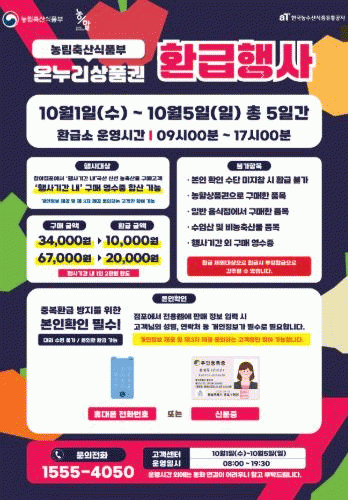 °í°´Àº Çà»ç ±â°£¿¡ ÁöÁ¤ ½ÃÀå ³» ¡®¿Â´©¸®»óǰ±Ç ȯ±ÞÇà»ç Âü¿© Á¡Æ÷¡¯ ¾È³»ÆÇÀÌ ºÎÂøµÈ Á¡Æ÷¿¡¼ ±¹»ê ³óÃࡤ¼ö»ê¹°À» ±¸ÀÔÇÑ ÈÄ, ȯ±Þ¼Ò¸¦ ¹æ¹®ÇØ ±¸¸Å ¿µ¼öÁõ ¶Ç´Â ¸ð¹ÙÀÏ °áÁ¦ ȸéÀ» Á¦½ÃÇÏ¸é ±¸¸Å ±Ý¾×ÀÇ ÃÖ´ë 30%¸¦ ¿Â´©¸®»óǰ±ÇÀ¸·Î µ¹·Á¹ÞÀ» ¼ö ÀÖ´Ù.