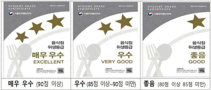 ½ÄǰÀǾàǰ¾ÈÀüó¿¡¼ ÁÖ°üÇÏ´Â À§»ýµî±ÞÁ¦´Â À½½ÄÁ¡ÀÇ À§»ý ¼öÁØÀ» Æò°¡ÇÏ´Â Á¦µµ·Î ¿µ¾÷ÀåÀÇ Àü¹ÝÀûÀÎ À§»ý »óÅ µî 44°³ Ç׸ñ¿¡ ´ëÇØ ¸Å¿ì ¿ì¼ö, ¿ì¼ö, ÁÁÀ½ÀÇ 3´Ü°è·Î µî±ÞÀ» ºÎ¿©ÇÑ´Ù.