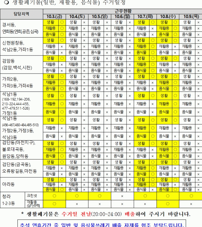 Áö³ 29ÀϺÎÅÍ ³»´Þ 2ÀϱîÁö Ãß¼®¸íÀýÀ» ´ëºñÇÏ¿© ¡®¼Ö¼±¼ö¹ü, ³» Áý ¾Õ, ³» Á¡Æ÷ ¾ÕºÎÅÍ Ä¡¿ì±â¡¯ ºÐÀ§±â¸¦ Á¶¼ºÇϰí, ¸Å³â Ãß¼® ¿¬ÈÞ ¶§¸¶´Ù °¢Á¾ »ýȰ¾²·¹±â·Î ÀÎÇØ ¹Ýº¹µÇ´Â ȯ°æ¿À¿° ¹× À§»ý¹®Á¦ µî¿¡ È¿À²ÀûÀ¸·Î ´ëÀÀÇϱâ À§ÇØ »çÀü È«º¸, À½½Ä¹°¾²·¹±â °¨·®È À¯µµ ¹× ÀûÁ¤ ó¸® ¾È³», ¾²·¹±â ¹«´ÜÅõ±â ¹× ºÒ¹ý¼Ò°¢ °èµµ ¹× È«º¸ µî ´Ü°èº° ´ëÃ¥À» ÃßÁøÇϰí ÀÖ´Ù.