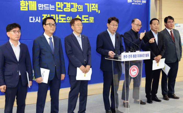 ¿ì¹ü±â ÀüÁÖ½ÃÀåÀº ¡°ÅëÇÕÀº ´Ü¼øÇÑ ÇàÁ¤±¸¿ªÀÇ ¹®Á¦°¡ ¾Æ´Ñ µÎ µµ½Ã¸¦ °¡µÎ´ø Áö¿ª°ú ÇàÁ¤, °æÁ¦ÀÇ Æ²À» ³Ñ¾î ´©±¸³ª ´Ù¾çÇÑ ±âȸ¿Í ÇູÀ» ´©¸®°í, ´©±¸³ª »Ñ¸®³»¸®¸ç »ì°í ½ÍÀº µµ½Ã·Î ³ª¾Æ°¡´Â ÀÏ¡±À̶ó¸ç ¡°¿ì¸® Áö¿ªÀÇ ´ç´çÇß´ø À§»óÀ» µÇã°í ´õ °ÇÑ °æÁ¦¸¦ ±¸ÇöÇØ ´ëÇѹα¹ Á߽ɵµ½Ã·Î ¿ì¶Ò ¼³ ¼ö ÀÖµµ·Ï ÅëÇÕÀÇ ±æÀ» ÇÔ²² °É¾î°¡°Ú´Ù¡±°í °Á¶Çß´Ù.