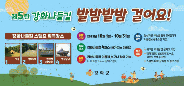 À̹ø Á¦5ź 縰Áö ÄÚ½º´Â ¾çµµ¸é ÀÏ´ëÀÇ Á¦4ÄÚ½º ¡®Çذ¡ Áö´Â ¸¶À»±æ¡¯·Î ¼±Á¤µÆ´Ù. °¡¸ª¿¡¼ Ãâ¹ßÇØ ÀÚ¿¬ ½£±æÀ» Áö³ª Á¤Á¦µÎ¹¦, °ÇÆòÇ×, ÇÔ»ó°ø¿øÀ¸·Î À̾îÁö´Â ±¸°£À¸·Î, ¾Æ¸§´Ù¿î ÇØ¾È±æÀ» µû¶ó °È´Â °ÍÀÌ Æ¯Â¡ÀÌ´Ù. ÀÎÁõ ÁöÁ¡Àº ¡ã°¡¸ª ¡ãÁ¤Á¦µÎ¹¦ ¡ãõ»óº´ ±Íõ°ø¿ø ¡ãÇÔ»ó°ø¿ø µî ÃÑ 4°÷ÀÌ´Ù.