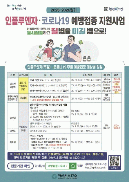 °ü³» ÁöÁ¤ÀÇ·á±â°ü 49°³¼Ò¿¡¼ ´çÀÏ Á¢Á¾ÀÌ °¡´ÉÇϸç, 65¼¼ ÀÌ»ó ¾î¸£½ÅÀº °°Àº ³¯ Á¢Á¾ ºÎÀ§¸¦ ´Þ¸®ÇØ ÀÎÇ÷翣ÀÚ(µ¶°¨) ¹é½Å°ú µ¿½Ã¿¡ ¸ÂÀ» ¼ö ÀÖ´Ù. À̹ø ¿¹¹æÁ¢Á¾¿¡ »ç¿ëµÇ´Â ¹é½ÅÀº ÇöÀç À¯ÇàÇÏ´Â ½Å±Ôº¯ÀÌ(LP.8.1)¿¡ È¿°úÀûÀÎ ÈÀÌÀÚ¡¤¸ð´õ³ª ¹é½ÅÀÌ »ç¿ëµÈ´Ù.