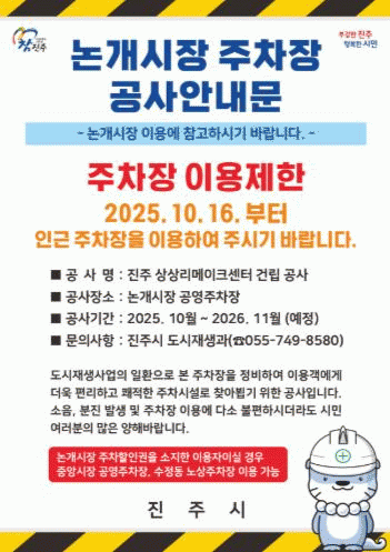 À̹ø °ø»ç·Î ÀÎÇØ ½ÃÀå ¹æ¹®°´µéÀÇ ÁÖÂ÷ ºÒÆí°ú È¥¼±À» ¿¹¹æÇϱâ À§ÇØ ½Ã´Â Çö¼ö¸·, TV ÀÚ¸· ¹æ¼Û, ÁÖÂ÷Àå ÇöȲ ¾È³»µµ ¼³Ä¡ µîÀ» ÅëÇØ °ø»ç ±â°£°ú Àα٠ÁÖÂ÷ÀåÀ» Àû±Ø È«º¸ÇÒ ¹æÄ§ÀÌ´Ù.