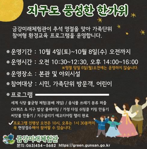 ±èÇö¼÷ ±º»ê½Ã ±âÈÄȯ°æ°úÀåÀº ¡°Ãß¼®À̶ó´Â ÀüÅë ¸íÀýÀÇ Àǹ̿¡ ȯ°æ°ú ³ª´®ÀÇ °¡Ä¡¸¦ ´õÇØ °¡Á·ÀÌ ÇÔ²² Áö±¸¸¦ »ý°¢ÇÏ´Â ½Ã°£À» ¸¶·ÃÇß´Ù¡±¸ç ¡°¸íÀýÀÇ Ç³¼ºÇÔÀ» ³ª ÀڽŰú °¡Á·, ±×¸®°í Áö±¸±îÁö ÇÔ²² ³ª´©´Â °è±â°¡ µÇ±æ ¹Ù¶õ´Ù¡±°í ¸»Çß´Ù.