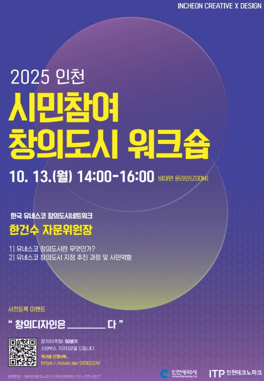 ¿öÅ©¼óÀº ¿Â¶óÀÎ(Zoom)¿¡¼ ¿¸®¸ç, ½Ã¹ÎµéÀ» ´ë»óÀ¸·Î âÀǵðÀÚÀο¡ ´ëÇÑ Q¡¤A¿Í »çÀü À̺¥Æ®¸¦ ÁøÇàÇØ °ü½ÉÀ» ³ôÀ̰í Àû±ØÀûÀÎ Âü¿©¸¦ À¯µµÇÒ ¿¹Á¤ÀÌ´Ù.