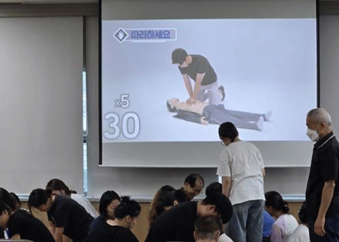 À̹ø ±³À°Àº Áß¾ÓÀÀ±Þóġ±³À°¿ø Àü¹® °»çÆÀ°ú ÇÔ²² ÀÏ¹Ý ½Ã¹Î°ú AED °ü¸®Ã¥ÀÓÀÚ µî ¹ýÁ¤Àǹ«±³À°À» ¹Þ¾Æ¾ß ÇÏ´Â ´ë»óÀÚµé·Î ÁøÇàµÆÀ¸¸ç, 4½Ã°£ °úÁ¤À¸·Î À̷аú ½Ç½ÀÀ» º´ÇàÇß´Ù.