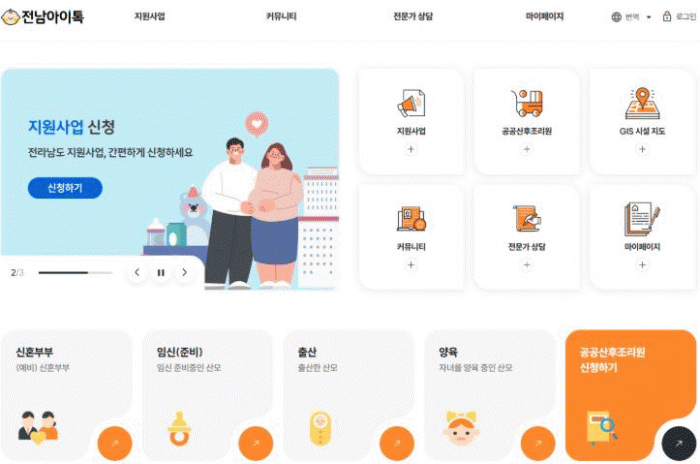 ¡®Àü³²¾ÆÀÌÅ塯¿¡¼± 300¿© °³°¡ ³Ñ´Â ±¹°¡, µµ, ½Ã±º ±â°üº° Àӽš¤Ãâ»ê¡¤À°¾Æ Áö¿ø»ç¾÷ Á¤º¸¸¦ È®ÀÎÇÒ ¼ö ÀÖ°í, ³ÀӺκΠ¿ø°Å¸® À̵¿ Áö¿ø µî 8°³ÀÇ µµ Áö¿ø»ç¾÷À» ½ÅûÇÒ ¼ö ÀÖ´Ù.