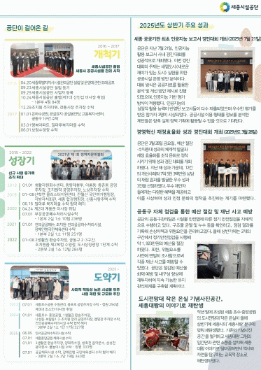 Ⱓȣ ÁÖ¿ä ³»¿ëÀº ¡ãÀÌ»çȸ ÀÌ±â¼ø ÀÇÀå, ¼¼Á¾½ÃÀÇȸ ÀÓ伺 À§¿øÀå µî ÁÖ¿ä ÀλçÀÇ Ã¢°£±â³ä Ãà»ç, ¡ã°ø´Ü ¿¬Çõ, ¡ã½Ã¹Îµé°ú ¹æ¹®°´µé¿¡°Ô »õ·Î¿î Àç¹Ì°¡ ÀÖ´Â ¼¼Á¾½Ã¸¦ À§ÇØ ´ë¿ÜÇù·Â±â°ü Çù¾÷À» ÅëÇØ ÃßÁøÇÑ ¼¼Á¾È£¼ö°ø¿ø µµ½É ¼Ó¿¡¼ Áñ±â´Â ³ëÁ£±â ¹°³îÀÌ(ÆÐµéº¸µå) µî 2025³âµµ »ó¹Ý±â °ø´Ü ÁÖ¿ä »ç¾÷¼º°ú, ¡ã°ø´Ü ¿î¿µ ÇÁ·Î±×·¥ ¾È³», ¡ã2025³âµµ ÇϹݱâ ÁÖ¿ä Çà»ç ¹× ±³À°?Àü½Ã ÇÁ·Î±×·¥ ÀÏÁ¤ ¾È³» µî ½Ã¹Îµé¿¡°Ô À¯ÀÍÇÑ Á¤º¸¸¦ ´ã¾Ò´Ù.