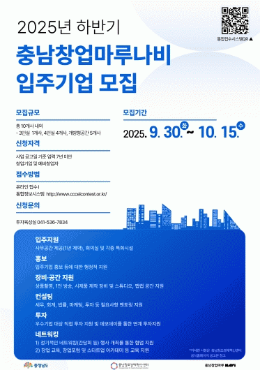 Ãæ³²Çõ½Å¼¾ÅÍ °ü°èÀÚ´Â ¡°Ã泲â¾÷¸¶·ç³ªºñ´Â ¿¹ºñâ¾÷ÀÚ¿Í Ãʱ⠽ºÅ¸Æ®¾÷ÀÌ ¾È½ÉÇÏ°í ¼ºÀåÇÒ ¼ö Àִ â¾÷ °ÅÁ¡ °ø°£¡±À̶ó¸ç ¡°µµÀüÀûÀ̰í Çõ½ÅÀûÀÎ ½ºÅ¸Æ®¾÷µéÀÇ ¸¹Àº Âü¿©¸¦ ±â´ëÇÑ´Ù¡±°í ¹àÇû´Ù.