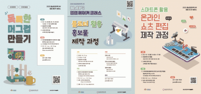 À̹ø ±³À° °úÁ¤Àº ¡ã½º¸¶Æ®Æù Ȱ¿ë ¿Â¶óÀÎ ¼îÃ÷ ÆíÁý Á¦ÀÛ °úÁ¤ ¡ãÇ÷ÎÅÍ È°¿ë È«º¸¹° Á¦ÀÛ °úÁ¤ ¡ã3D ÇÁ¸°ÅÍ µðÀÚÀÎ ¾ÅÅ· ¡®µ¶Æ¯ÇÑ ¸Ó±×ÄÅ ¸¸µé±â¡¯ °úÁ¤À̸ç, ½ºÅ¸Æ®¾÷°ú µµ¹ÎÀ» ´ë»óÀ¸·Î ÇÑ ½Ç½À Áß½É Ã¼Çè ÇÁ·Î±×·¥À¸·Î ÁøÇàµÈ´Ù. Âü°¡ÀÚµéÀº âÀÇÀûÀÎ ¾ÆÀ̵ð¾î¸¦ ½ÇÁ¦ Á¦ÀÛ¹°·Î ±¸ÇöÇϰí, ¸¶ÄÉÆÃ È°¿ë ´É·ÂÀ» ³ôÀÌ´Â °æÇèÀ» ½×À» ¼ö ÀÖ´Ù.