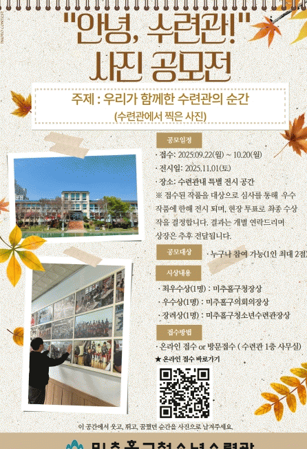 ¼ö·Ã°ü¿¡¼ÀÇ ¼ÒÁßÇÑ ¼ø°£À» ´ãÀº »çÁøÀ̶ó¸é ´©±¸³ª ÀÀ¸ðÇÒ ¼ö ÀÖÀ¸¸ç, û¼Ò³â»Ó ¾Æ´Ï¶ó Áö¿ª Áֹεµ Âü¿©ÇÒ ¼ö ÀÖ´Ù.