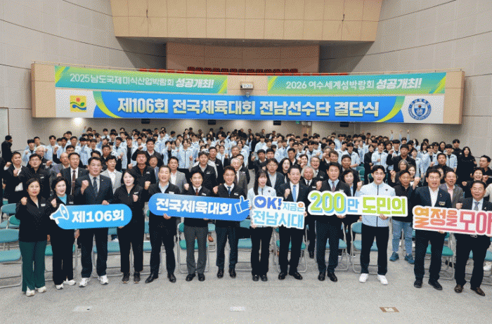 °á´Ü½Ä¿¡´Â ±è¿µ·Ï µµÁö»ç¿Í Àü³²µµÀÇȸ µµÀÇ¿ø, ¼±¼ö.ÀÓ¿ø µî 200¿© ¸íÀÌ Âü¼®ÇÑ °¡¿îµ¥ ¼±¼ö´Ü ¿µ»ó »ó¿µ¿¡ À̾î Âü°¡°èȹ º¸°í, ¼±¼ö´Ü±â ¼ö¿©, ¼±¼ö´ëÇ¥ ¼±¼, °Ý·Á±Ý ¹× üÀ°ÁøÈZ±Ý Àü´Þ ¼øÀ¸·Î ÁøÇàµÆ´Ù.