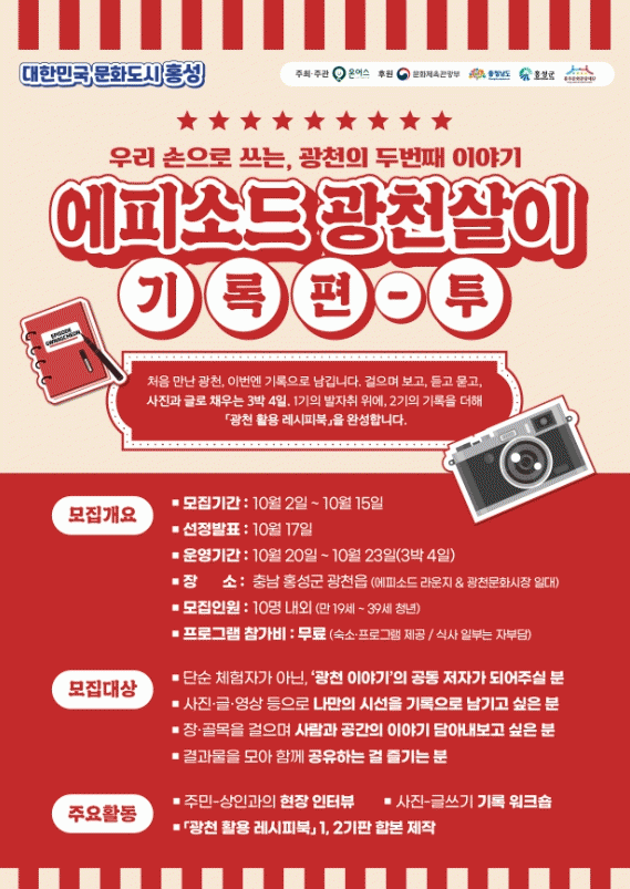 À̹ø ÇÁ·ÎÁ§Æ®´Â ´Ü¼øÇÑ ¿©ÇàÀÌ ¾Æ´Ï¶ó ±¤ÃµÀÇ °ñ¸ñ°ú ÀüÅë½ÃÀåÀ» Á÷Á¢ °ÉÀ¸¸ç Áֹΰú »óÀÎÀÇ À̾߱⸦ µè°í À̸¦ »çÁø°ú ±Û·Î ±â·ÏÇØ Áö¿ª °íÀ¯ÀÇ ÄÜÅÙÃ÷·Î È®»êÇÏ´Â µ¥ ¸ñÀûÀÌ ÀÖ´Ù. ƯÈ÷ 1±â¿¡¼ ÃàÀûµÈ ±â·Ï°ú À̹ø Ȱµ¿À» °áÇÕÇØ ±¤ÃµÀÇ Æ¯»öÀ» ´ãÀº ¡®±¤Ãµ Ȱ¿ë ·¹½ÃÇǺϡ¯À» Á¦ÀÛÇÒ °èȹÀÌ´Ù.