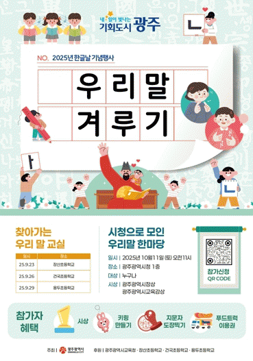 ÀÌ Çà»ç´Â ¿ì¸®¸»ÀÇ ¾Æ¸§´Ù¿ò°ú Á߿伺À» ¾Ë¸®°í ÃʵîÇлýµé¿¡°Ô ¹Ù¸¥ ¾ð¾î½À°üÀ» ±æ·¯ÁÖ±â À§ÇÑ ±³À°¡¤¹®È ÇÁ·Î±×·¥ÀÌ´Ù. ±¤Áֽñ³À°Ã»ÀÌ ÈÄ¿øÇÏ°í »óÀåÀ» Áö¿øÇØ Àǹ̸¦ ´õÇÑ´Ù.