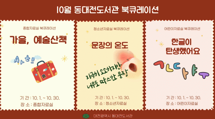 û¼Ò³âÀÚ·á½Ç¿¡¼´Â ¡®¹®ÀåÀÇ ¿Âµµ¡¯¶ó´Â ÁÖÁ¦·Î µû¶æÇÑ À§·Î°¡ ´ã±ä ¸í¹®ÀåÀ» ¸ðÀº µµ¼ 10±ÇÀ», Á¾ÇÕÀÚ·á½Ç¿¡¼´Â ¡®°¡À», ¿¹¼ú »êÃ¥¡¯À̶ó´Â ÁÖÁ¦·Î ¿¹¼ú ¼¼°è·Î ¶°³ª´Â °¡À» ¿©Çà¿¡ ¾î¿ï¸®´Â µµ¼ 12±ÇÀ» ¼Ò°³ÇÑ´Ù.